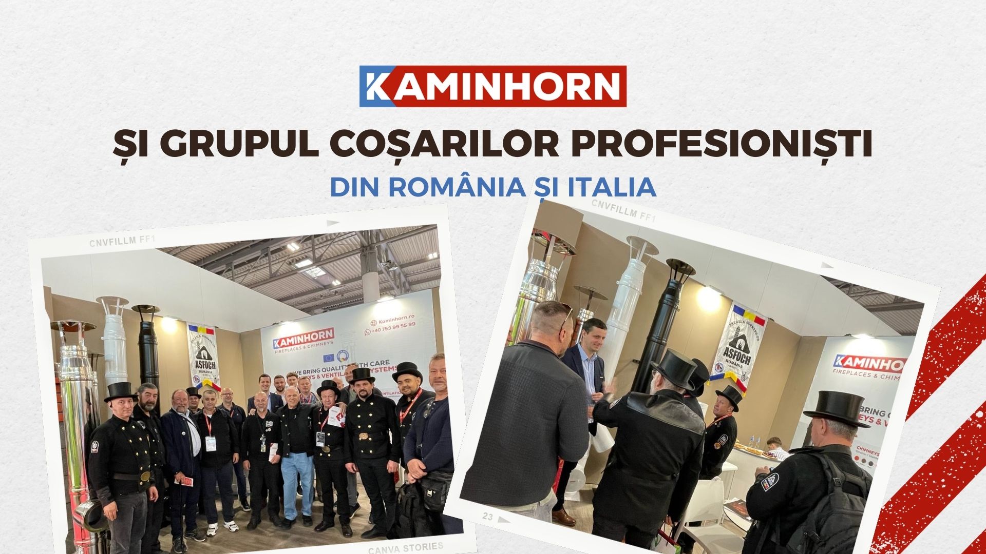 Am avut plăcerea de a ne întâlni la expoziția de la Verona cu membrii grupului de coșari autorizați din România, reprezentanți ai asociației ASFOCH. Aceștia ne-au vizitat la standul Kaminhorn alături de coșarii profesioniști din Italia. Am împărtășit astfel experiențe profesionale și perspective de viitor pentru o industrie mai sigură și mai eficientă.